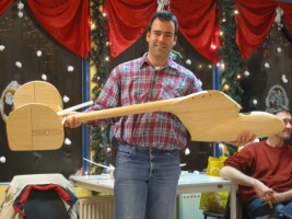 Op de oliebollenbouwavond hebben we leuk chucks gebouwd. Dit eindigde in een wedstrijd bekertjes omvliegen. Mijn rc-uitgevoerde chuck had het grote voordeel ook na de worp nog te sturen te zijn, dus winst kon niet uitblijven. De prijs: een gebouwde romp en staartstuk van een Austria Elefant.
